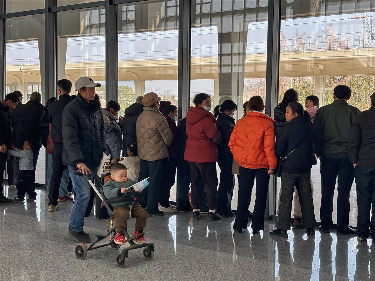 车站放开了候车大厅入口,不候车、不送客也可以进入。人们走进开着暖气、热烘烘、宽敞明亮的候车室,开心地合影留念。不少人站在玻璃墙内,看着站台和轨道,等候第一趟高铁到来。